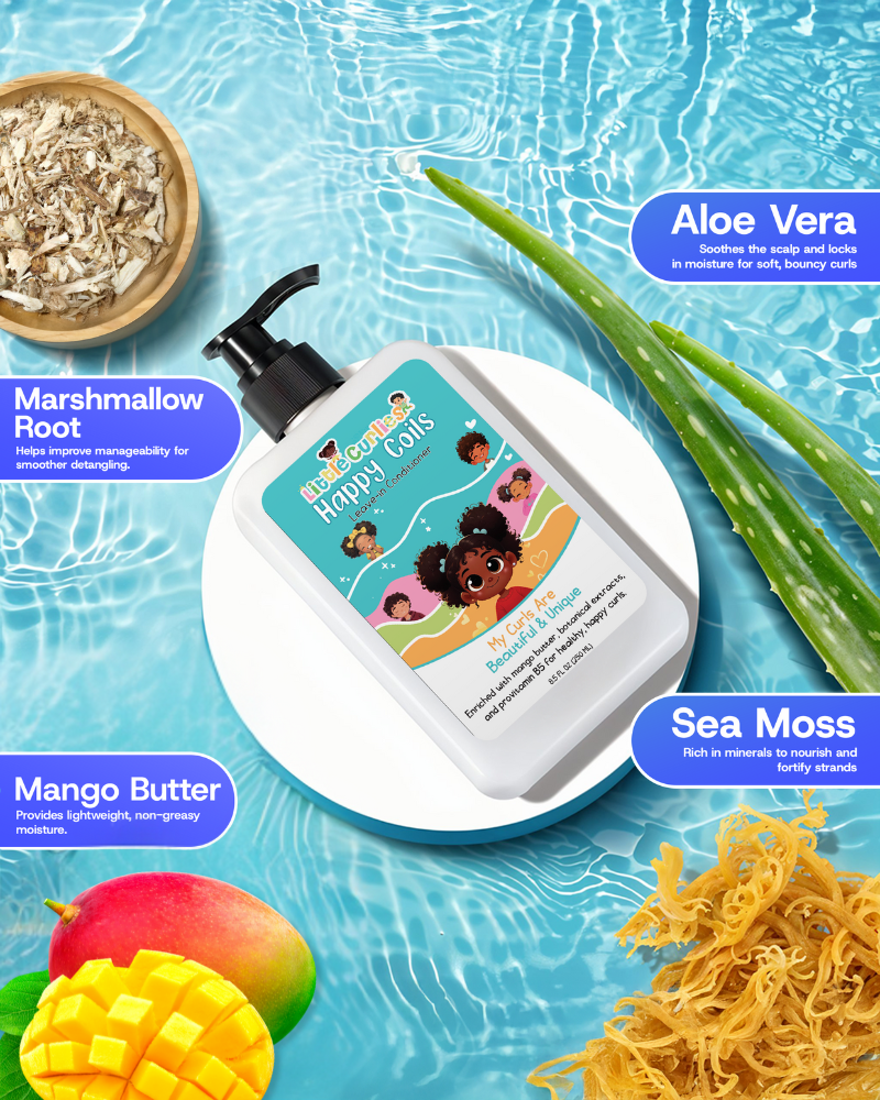 Apply a generous amount of Happy Coils Leave-In Conditioner to clean, damp hair, focusing on the ends and working through with fingers or a wide-tooth comb. Do not rinse. Style as desired. For best results, use after cleansing and conditioning with Happy Coils Hydrating Shampoo and Happy Coils Moisturizing Conditioner.